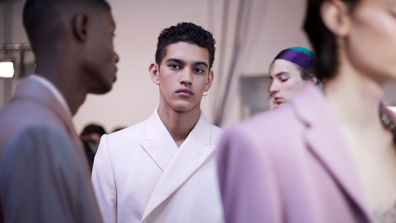 Returning to the London Fashion Week stage in January with support from GQ China, 8on8’s “Wait Rose!” AW20 collection seemed ripped from the playbook of Wes Anderson. Set at an imagined exclusive party populated by aging celebrities, the collection featured flaming roses, flowing silk, and even a baby blue bellboy-inspired suit. Donned by a diverse group that included plus-size and transgender models, 8on8’s mash-up of goofy glam rock and stretchy seventies tailoring proved a winning recipe of loving absurdity. The label hammed things up even more with a collaboration with Italian sportswear brand Kappa, topping out in a hand-washed gold tracksuit.